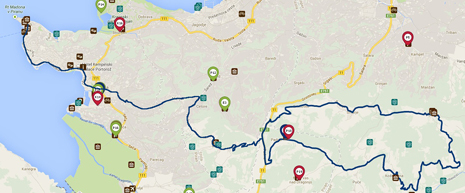 Из Пирана маршрут ведёт нас вдоль побережиья, мимо Бернардина, Порторожа, Луции (где мы начинаем готовиться к подьему), Малии (долгое восхождение, которое требует много усилий), Корт ( старая деревня с великолепной архитектурой и красивой природой), в конце Корта нас ждёт склон против главной дороги, где мы поворачиваем против Падне, Коштабоне (красивая деревня, которую окружает природа), Жупанчичем, Фиероге, Помяне, Шмарям, Гринтовце и назад против Падне, Кортам, Малии, Луции и к Пирану.