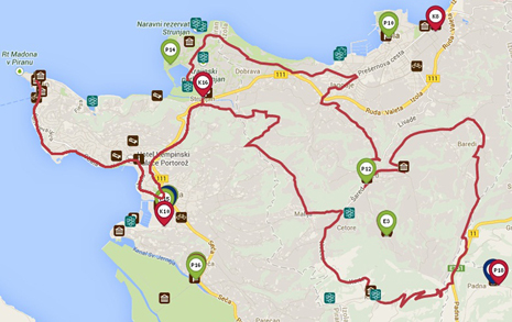 Tutti gli sentieri iniziano nella architettonicamente interessante città di Pirano, che fornisce un ottimo punto di partenza per tutte le escursioni nella nostra Istria. Il terreno estremamente movimentato ha un sacco di attrazioni naturali e architettoniche, dove vi muovete nella natura incontaminata. Questa è la scelta giusta per i ciclisti che vogliono aria fresca, terreno vario con salite e discese.