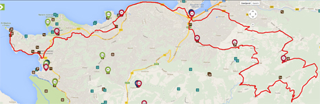 Da Pirano il sentiero ci conduce lungo la costa, oltre Bernardino, Portorose, dove svoltiamo verso l'auditorium (lì ci aspetta una salita breve), proseguiamo attraverso il tunnel della Parenzana, proseguiamo tra i campi scendendo a Strugnano, poco prima del tunel che ci porta al campeggio svoltiamo a destra lungo una strada stretta. Alla fine della strada dobbiamo svoltare a sinistra e prima del ponte di nuovo a destra (ci ritroviamo di nuovo tra i campi), da lì basta seguire l'unica strada e alla fine svoltare a sinistra. La strada è stretta e tortuosa, e durante l'estate è piena di ciclisti, escursionisti e trattori, quindi cautela è attenti e preparati a tutto. Seguite tutta la strada fino alla fine, dove si gira a destra in direzione Dobrava. Davanti a noi ce una breve salita, una volta su, girate a destra e proseguite fino al tunnel Jagodje. Dall'altra parte del tunnel proseguite lungo il sentiero fino alla fine (contrassegnata con il segno della bicicletta) dove arriverete ad un incrocio dove si gira a sinistra verso Isola e sulla strada principale a destra verso il negozio di bici, che è a un bivio. Da qui proseguite fino al mare. Lungo la costa si va fino alla stazione ferroviaria di Capodistria e proseguite in direzione Prade, Bonini, Sv. Anton Kavalič, Lopar, Popetre, Trsek, Boršt, Marezige, Montinjan, Vanganel, Capodistria di nuovo fino a Pirano.